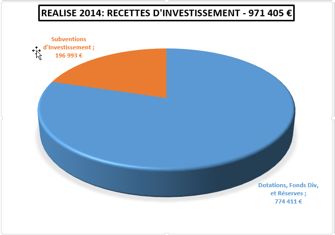 L’emprunt non réalisé, prévu pour un montant de 1 272 000 € a, bien sûr, diminué le montant des recettes d’investissement. Même si les dépenses d’investissement ont été inférieures à celles budgétées, le déficit d’investissement est de 326 505 € reporté sur l’année 2015.
