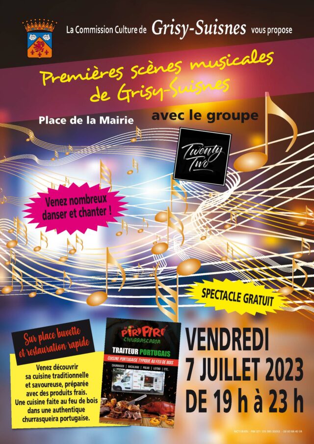 Les premières scènes musicales de Grisy-Suisnes Rendez-vous le Vendredi 7 juillet 2023 place de la Mairie à partir de 19h00 pour se détendre, écouter de la musique et danser si le cœur vous en dit Spectacle gratuit Un excellent food-truck sera sur place afin de se restaurer et se désaltérer. Pensez à réserver si vous…